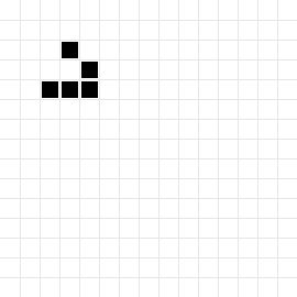 In Game of Life, a glider is the smallest space ship possible. It’s travelling diagonally with a period of 4 with a speed of 1 cell per 4 generations.