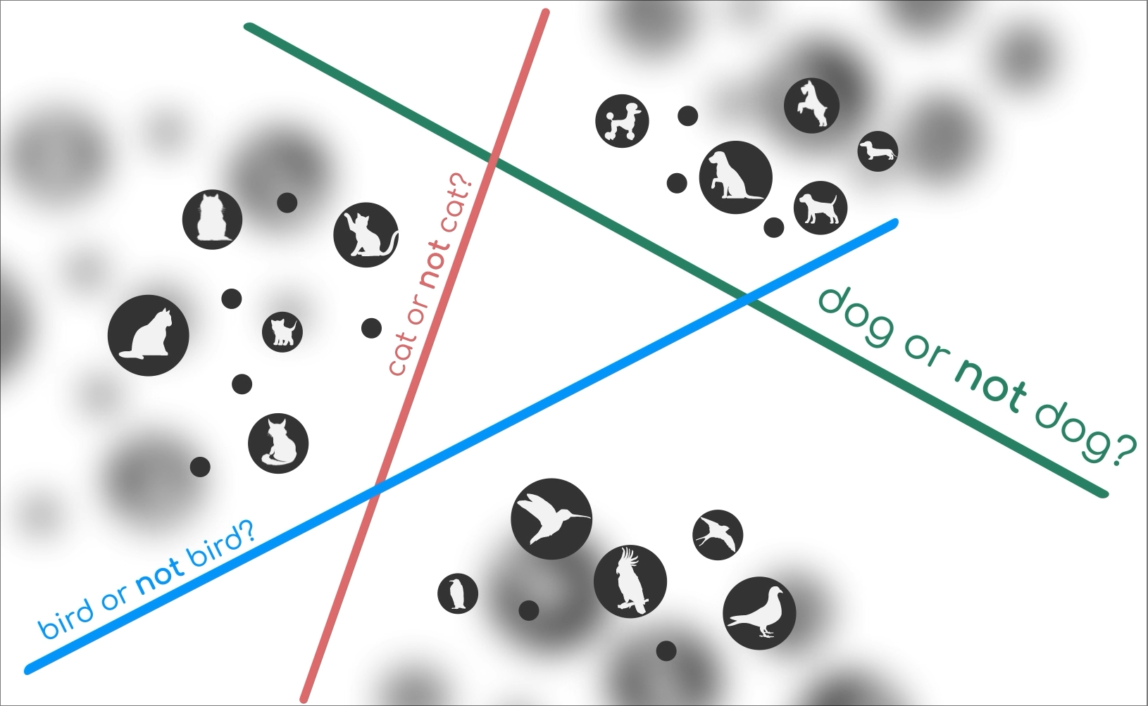 The one-vs-rest method performs regression for possible data labels. After that, the predicted label is the label with the highest probability among all possible data labels.