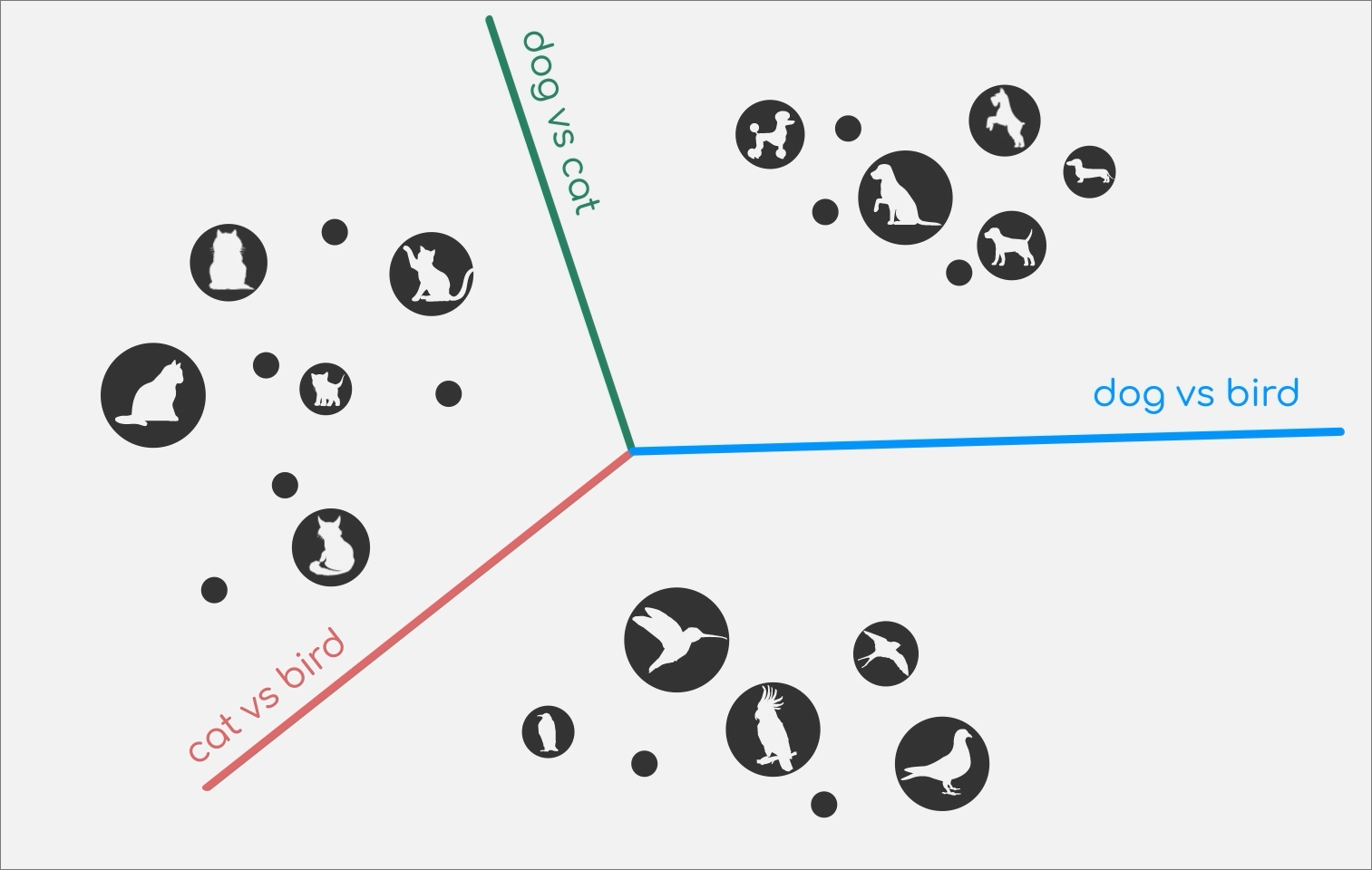 Each class is compared with every other individually. It contains more details than the one-vs-rest approach due to its nature of pair-wise comparison.