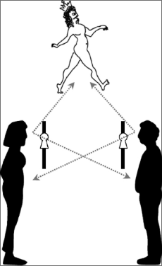 Each observer sees the event and sees the other seeing it. But because each espies the other through the anonymity of a keyhole, their awareness falls short of common knowledge; neither one knows that they have been seen seeing it: