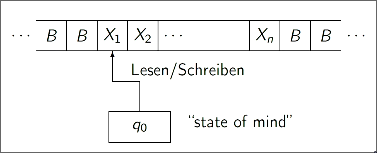 A tape is an infinite sequence of elements where each element can be blank or a state . Almost all cells are non-blank.